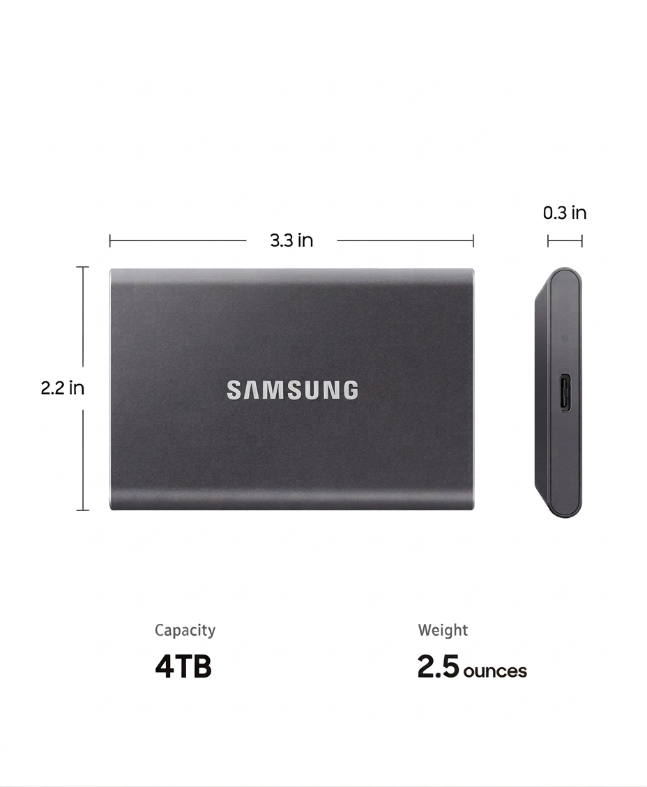 Samsung Portable SSD T7 4TB është një zgjidhje premium për ruajtje të jashtme, që kombinon performancë shumë të lartë me dizajn kompakt dhe siguri të avancuar. Falë teknologjisë NVMe dhe ndërfaqes USB 3.2 Gen 2, ky SSD arrin shpejtësi deri në 1050 MB/s në lexim dhe 1000 MB/s në shkrim, duke e bërë ideal për transferimin e file-ve të mëdha brenda sekondave.